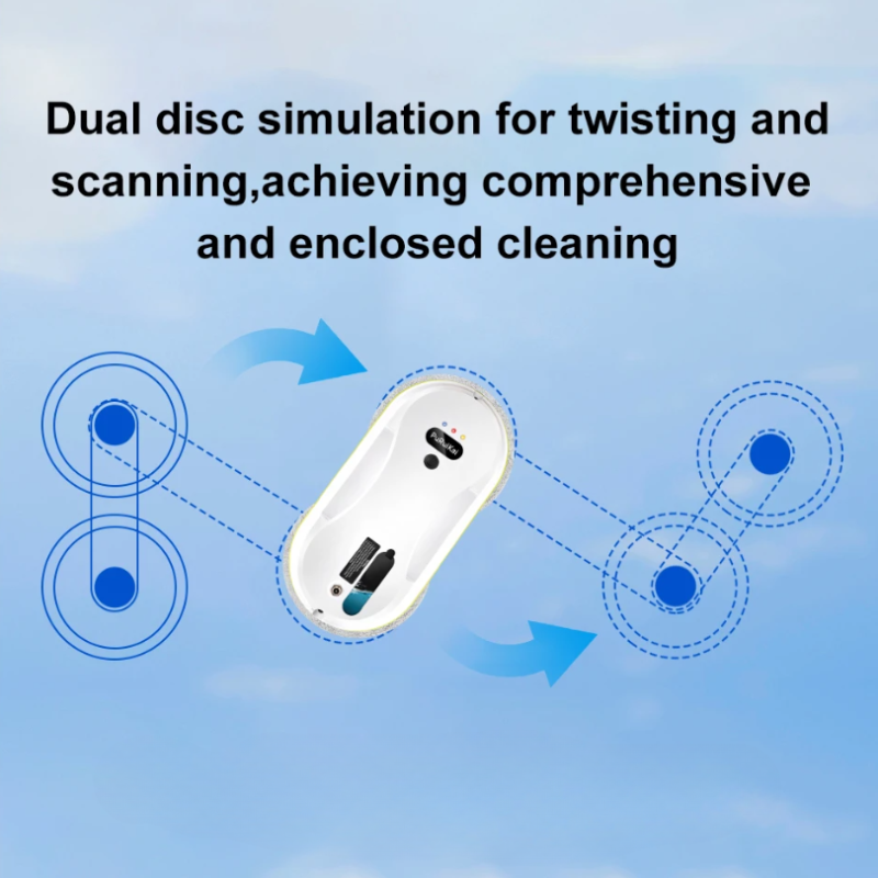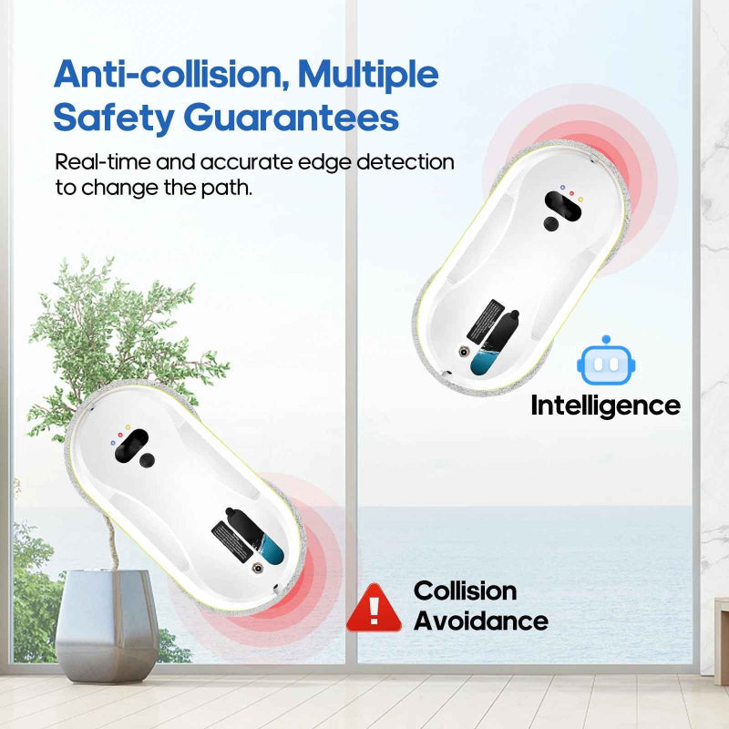 CleaningBot använder avancerad gyroskopteknik, inbyggd vattenspray och roterande skivor för en streckfri rengöring på alla plana ytor. Med kantdetektering och antikollisionssensorer navigerar den säkert genom dina fönster och möbler utan att orsaka skador. Smart design garanterar exakt, handsfree-rengöring varje gång.