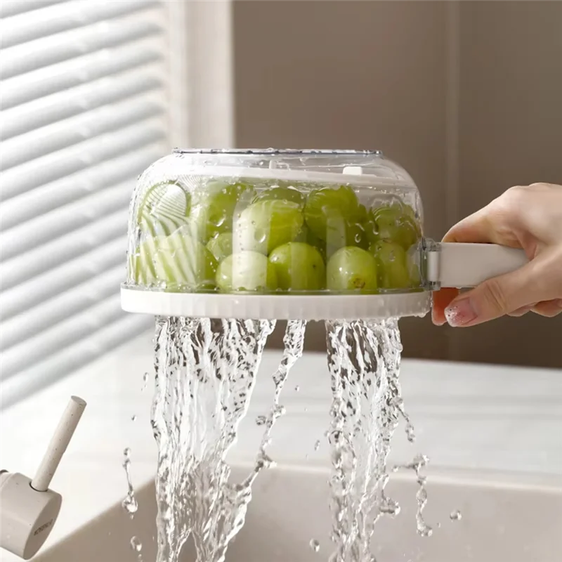 Denna multifunktionella korg låter dig diska frukt och grönsaker direkt i korgen. Dess säkra snäpplock gör det enkelt att förvara den efter sköljning. Den är utformad för att effektivisera köksuppgifter och hjälper till att minska röran och spara tid.