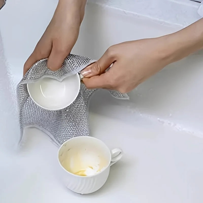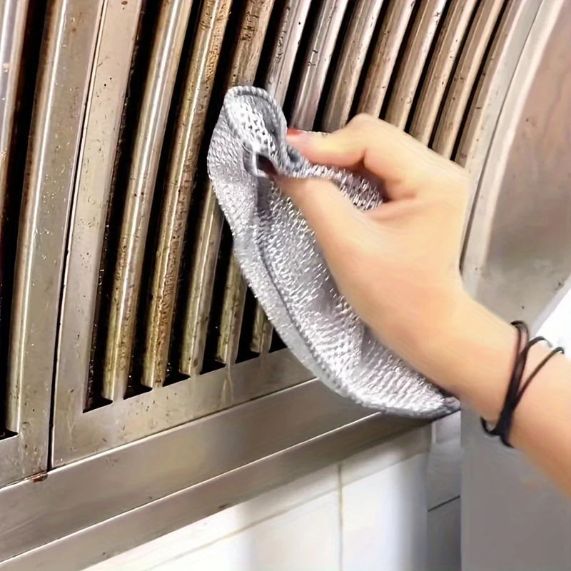 Vår rengöringsduk blandar effektiviteten hos mikrofiber med skrubbstyrkan hos rostfritt stål för en heltäckande rengöring. Den är säker för alla köksytor, inklusive disk, kastruller, stekpannor, bänkskivor och spishällar, och ger en repfri finish.